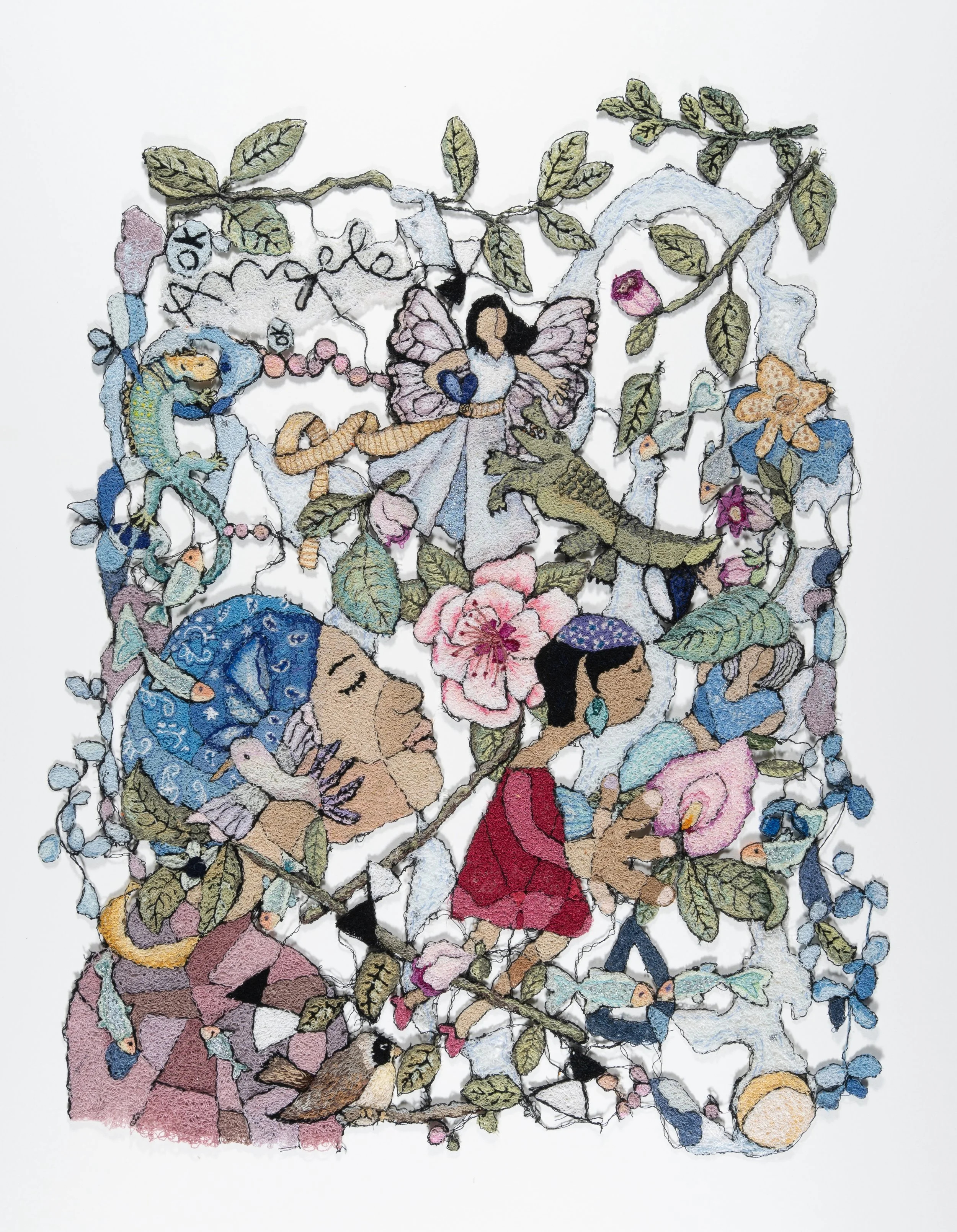 “free spirits”, 2023, thread on water-soluble material, 34” x 40”