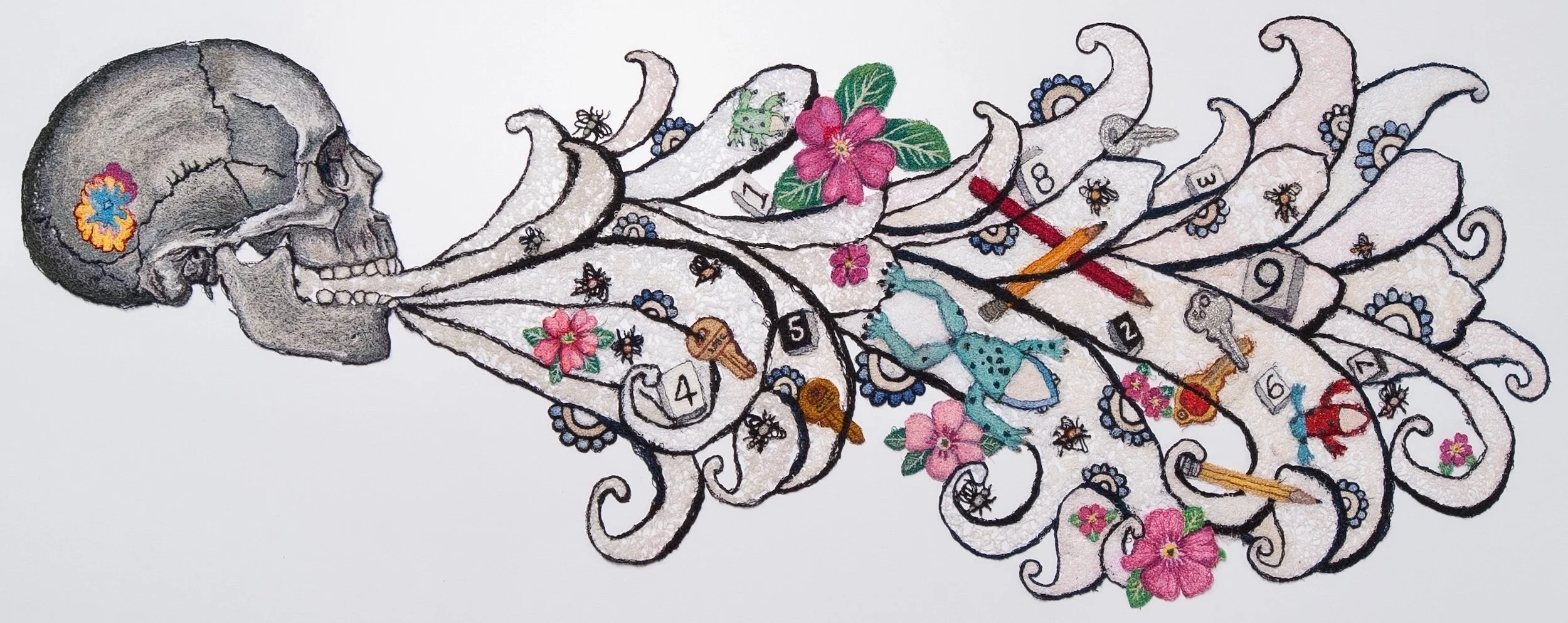 “Keep Going”, 2025, thread on water-soluble material, 20” x 17”
