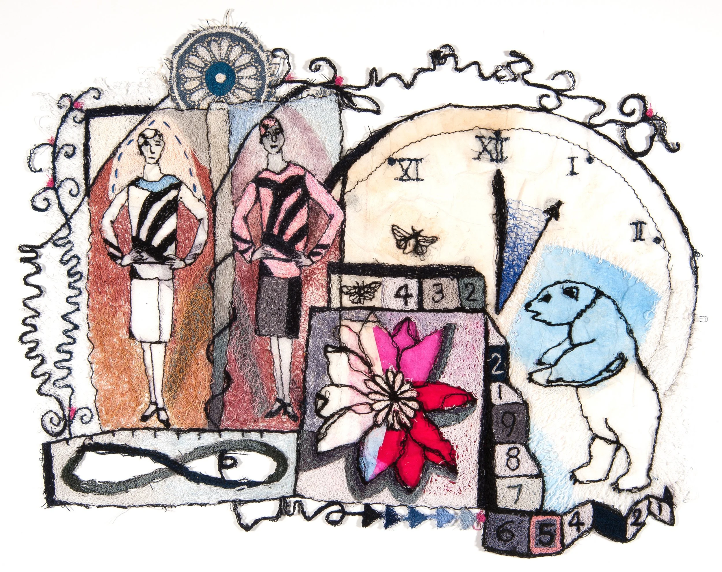 “The Twelfth Summer”, 2013, thread on water-soluble material and fabric, 21” x 20”